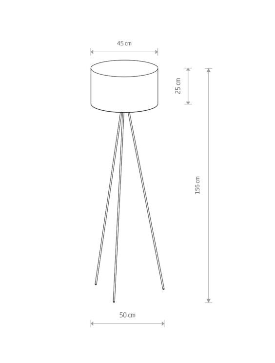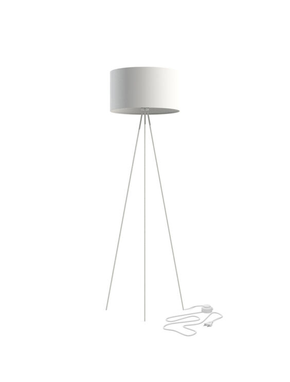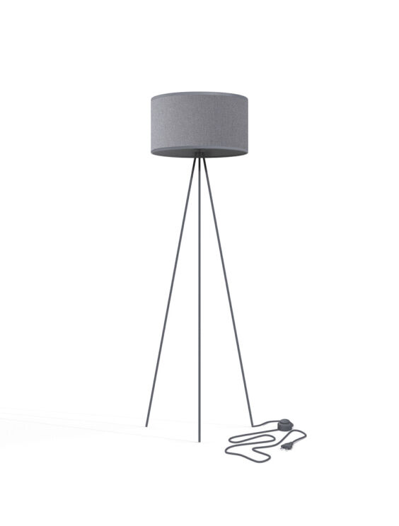 Lampada da terra modello Cadilac I con basamento in metallo con coprilampada in tessuto disponibile nei colori nero, gray o bianco. Altezza 156 cm , Larghezza 50 cm, Altezza del paralume 25 cm, Larghezza paralume 45 cm.