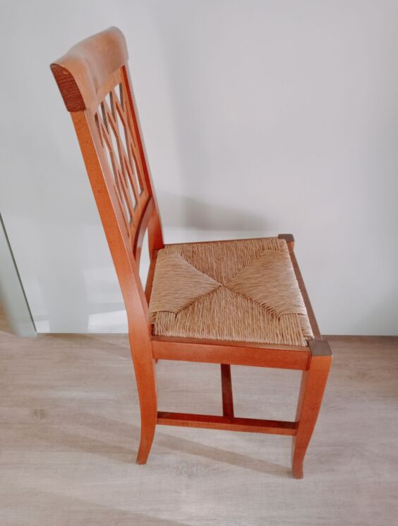 Sedia in legno tinto noce medio anticato con seduta paglia vera